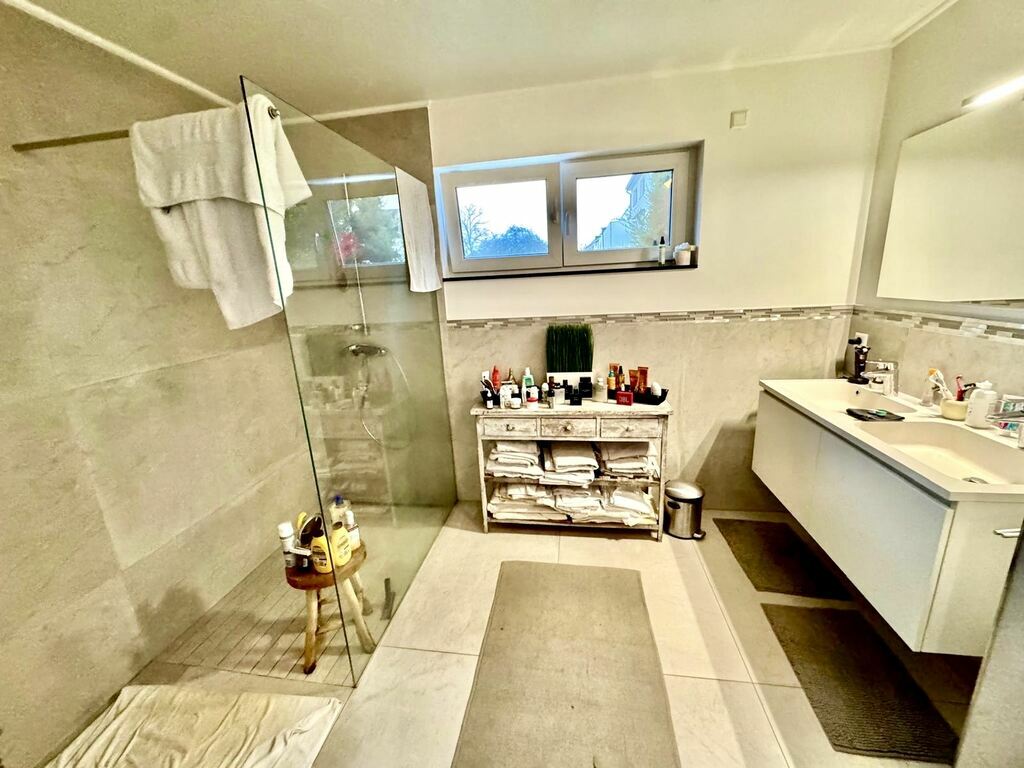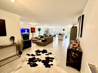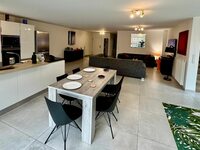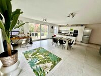Hall d'entrée, vaste pièce de vie de plus de 75m2 avec belle cuisine ouverte et accès direct à une belle terrasse et au grand jardin. Une chambre et une salle de douche au rez-de-chaussée.